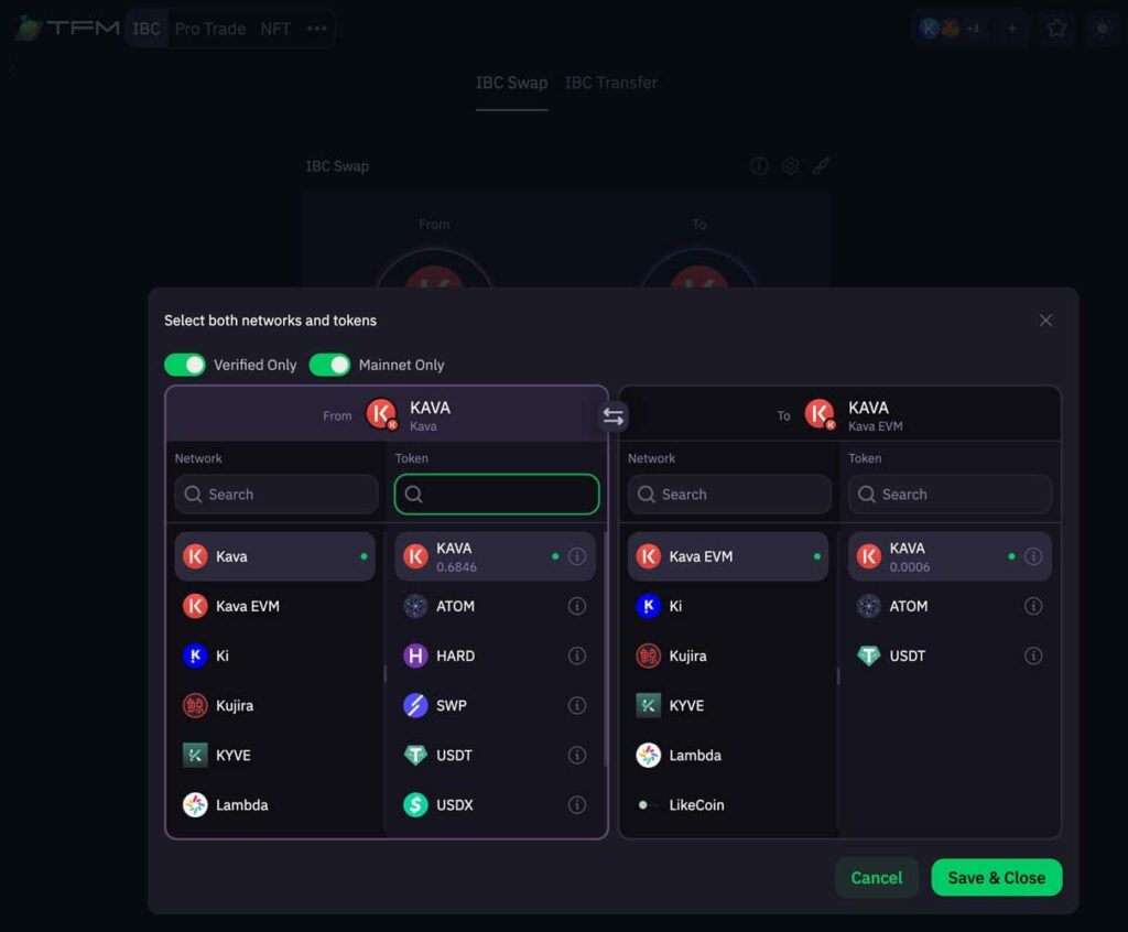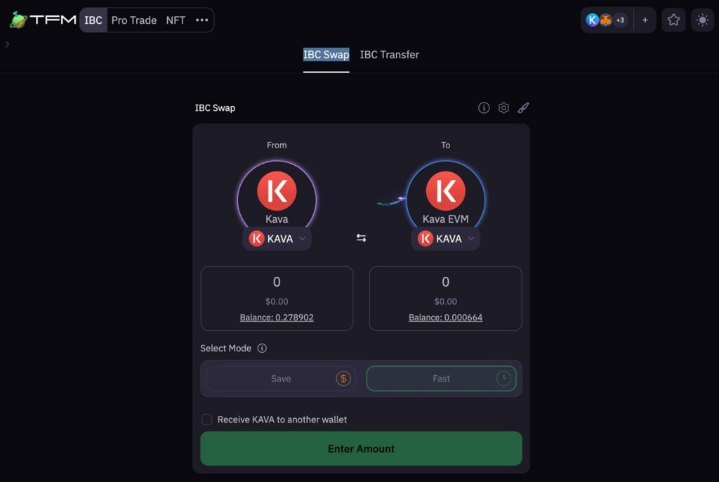 To add KAVA to your KavaEVM wallet I’ve personally used TFM bridge. It allows to transfer or swap tokens from most of all chains in the Cosmos. You need at the same time connect your Keplr and MetaMask wallets to the app.